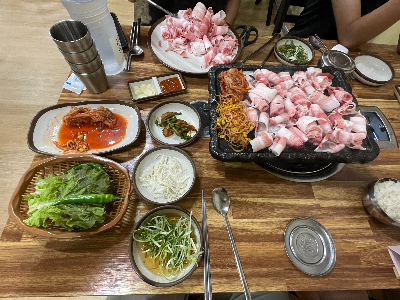 - 다양한 메뉴 — 삼겹살, 목살, 흑돼지, 한우 차돌박이까지 한 자리에서 맛볼 수 있음